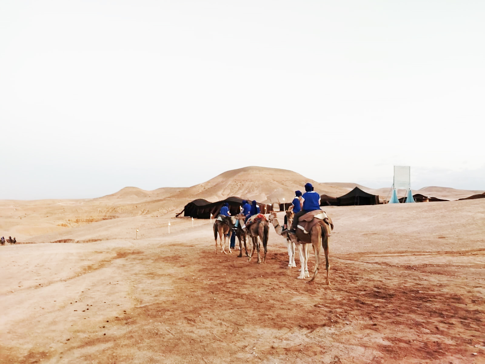 We drive from Marrakech to Agafay desert around 4pm. The trail takes about 40mintutes to get there. First we will be welcomed by the local team and get a cup of mint tea. Afterwards we go for camel ride over the desert. The after that we assist the sunset time. Then our diner will be served by local staff in a very romantic place. After diner we will drive back to Marrakech.